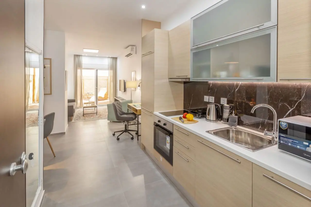 - غرفة نوم واحدة، حمام واحد، تصميم مفتوح