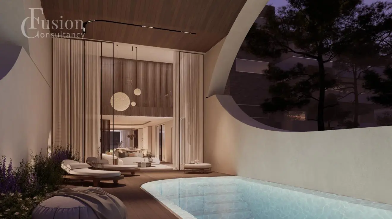 Conçu par un designer de renommée internationale, chaque élément – des façades vitrées aux intérieurs fluides – a été pensé pour offrir à la fois intimité et présence. Ce havre de paix sur le toit est le lieu où l'excellence du design international rencontre la sérénité du littoral, et où le soleil levant et la mer se confondent en un horizon extraordinaire.
