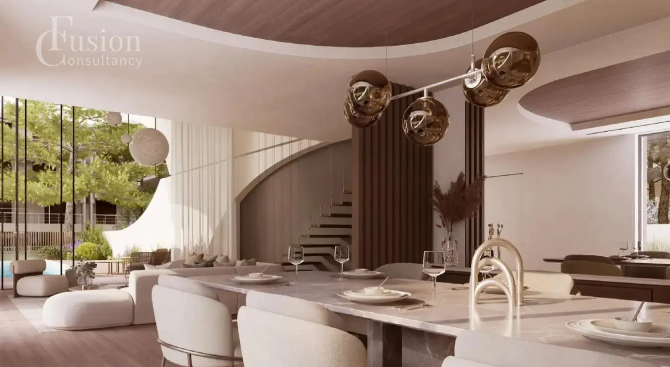 Située au sein du prestigieux complexe Double Infinity Residences, cette élégante maison de ville en bord de mer Elle s'étend sur deux étages et s'ouvre sur un jardin privé luxuriant avec sa propre piscine — le refuge extérieur idéal pour les réunions de famille ou les moments de calme au soleil.