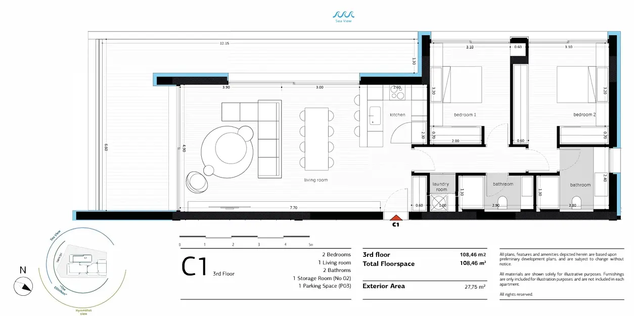 Découvrez la vie côtière moderne dans cet appartement de 109 m² avec 27,75 m² d'espace extérieur, idéalement situé en bord de plage à Alimos, à quelques minutes du projet Elliniko. Cette résidence comprend 2 chambres, 2 salles de bain, un cellier et un parking privé, alliant praticité et confort raffiné.