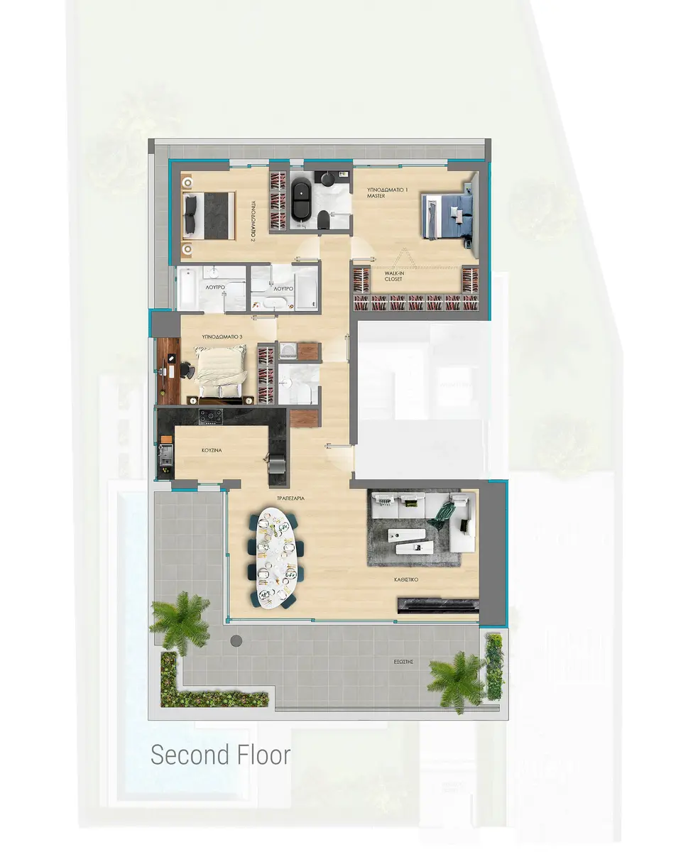A stylish 3-bedroom apartment with a spacious wraparound balcony in the heart of Glyfada.