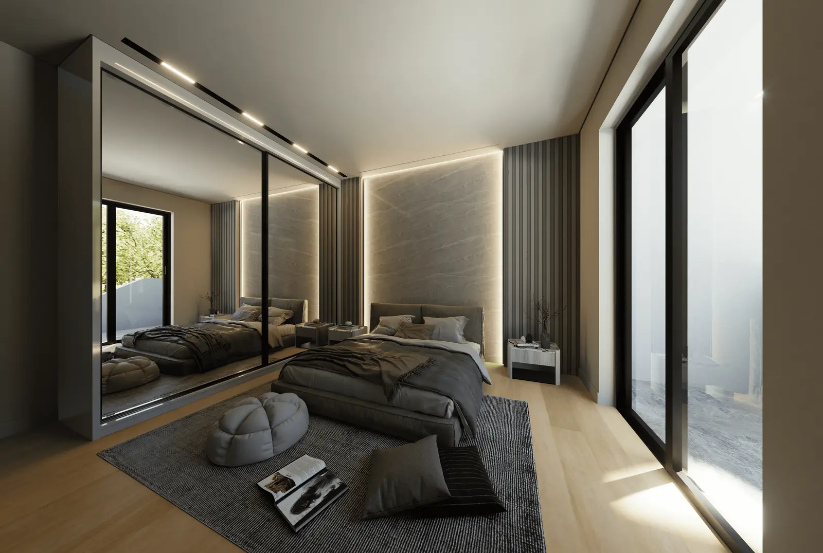 Designed with minimal aesthetics and premium finishes, the property spans two levels and includes a private garden of 160 m² with a corner swimming pool (30 m²)—a rare sanctuary in the heart of the city.