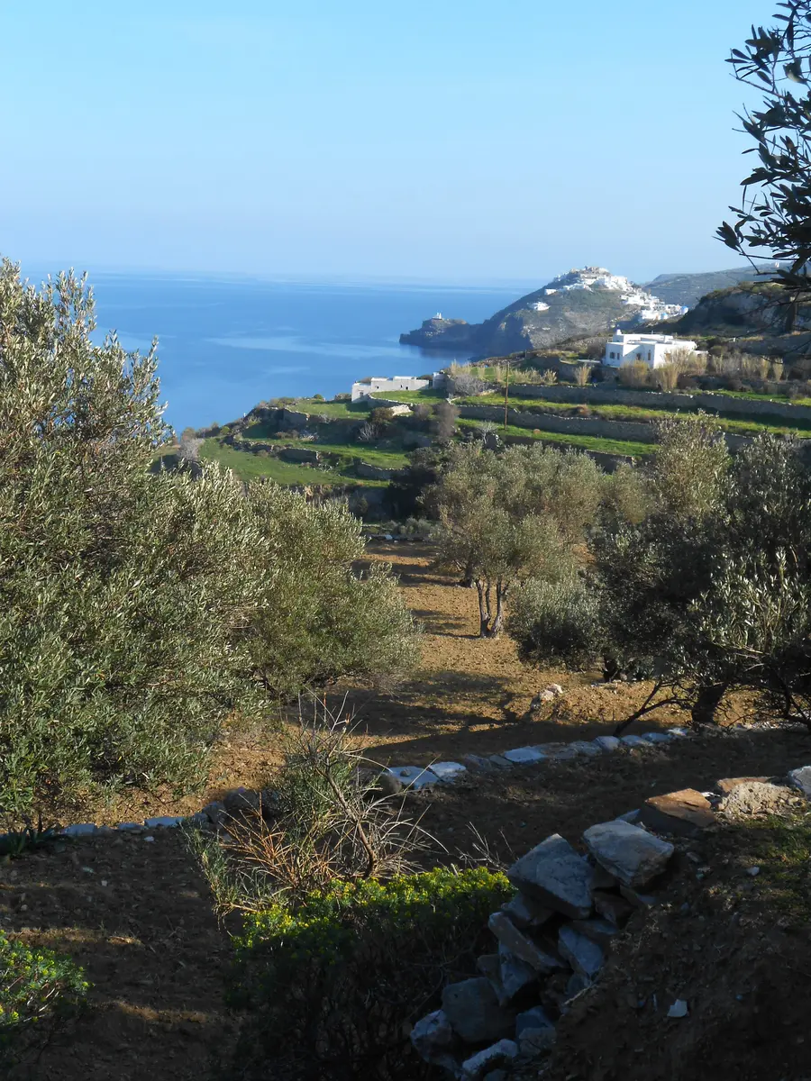 Adding to its uniqueness, the property benefits from a natural freshwater spring, flowing down the hillside, used since antiquity to irrigate the surrounding terraces, ensuring a valuable and sustainable water source, a rare asset in the Cyclades.