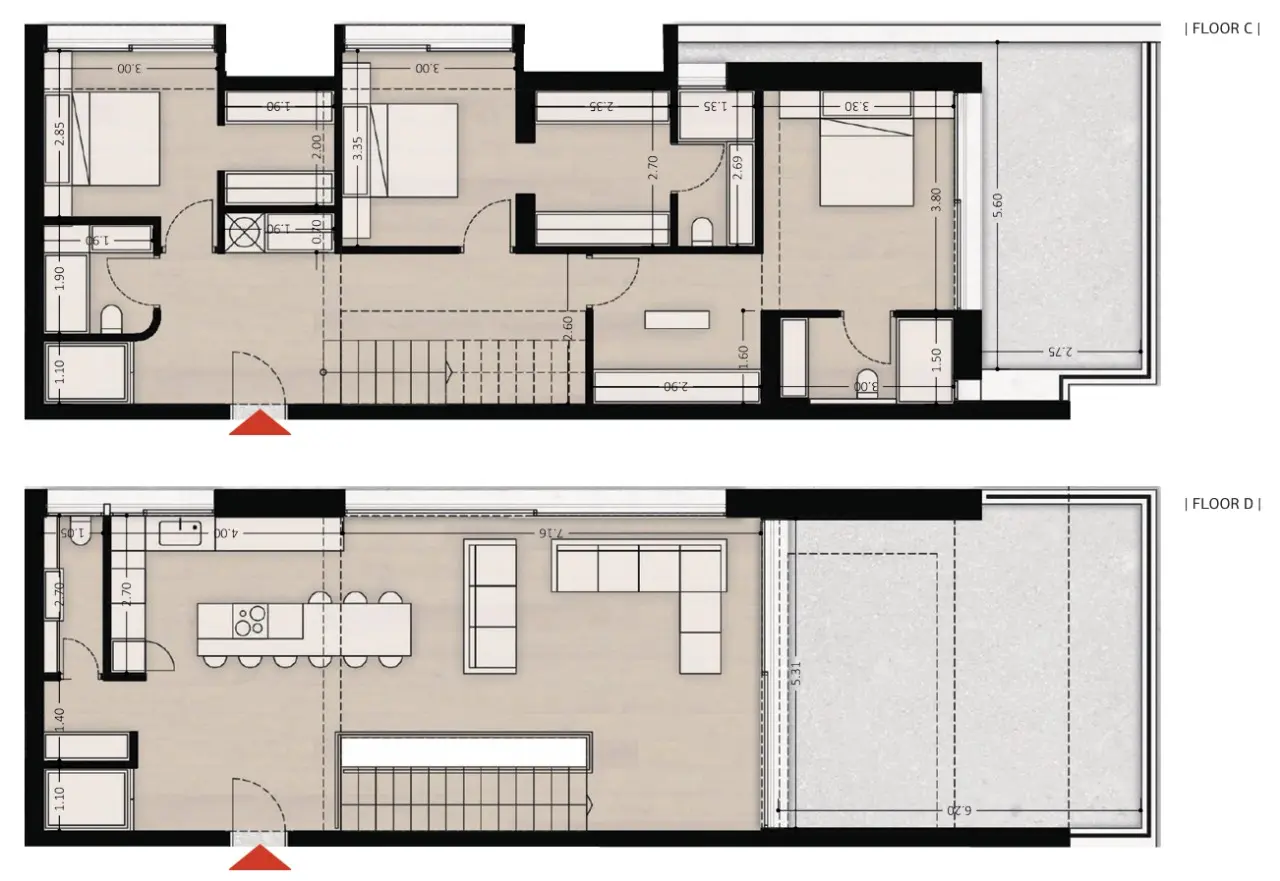 This maisonette spans the third and fourth floors, offering 3 bedrooms, 3 bathrooms plus a WC, and spacious open interiors with balcony views. With modern design, private parking, and storage, it delivers both luxury and functionality. Located in Voula Centre, it ensures a lifestyle defined by seaside relaxation, urban convenience, and investment value near Glyfada and Ellinikon.