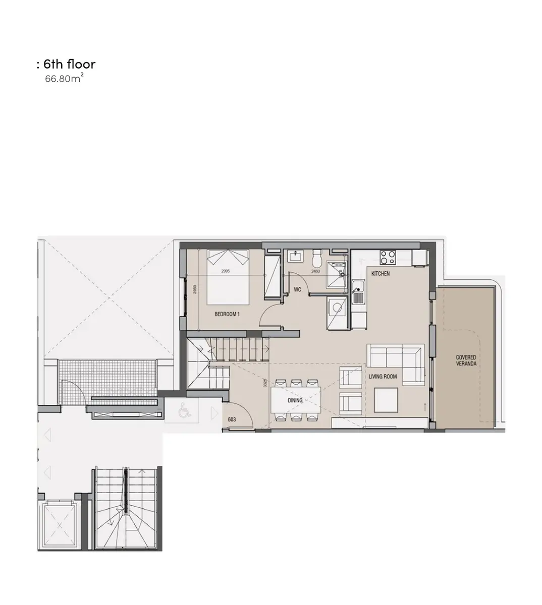 - 120,62 m² duplexlägenhet fördelad på 6:e och 7:e våningen